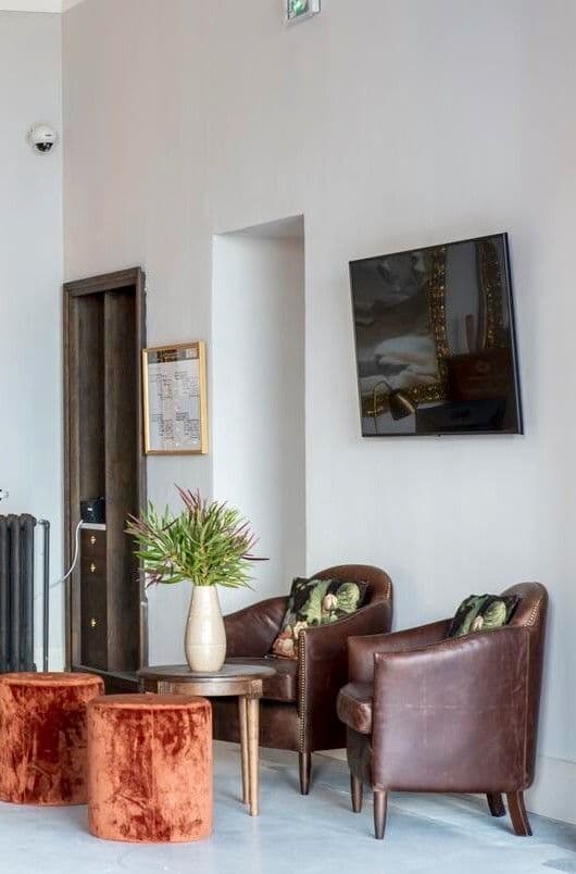 We created a cosy atmosphere with comfortable sofas and chairs in a pub in our hometown.