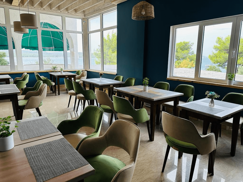 Miran is located in a picturesque bay in Croatia. Our colourful tables and chairs made their home in the restaurant with a beautiful view of the sea.